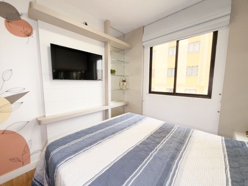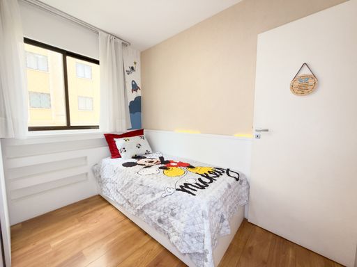 • 3 quartos, sendo 1 suíte, todos com móveis planejados, luminárias e cortinas;