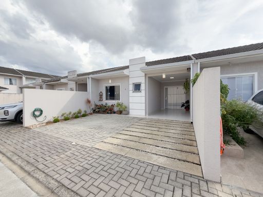 Casa térrea no bairro Estação, em Araucária, com 100m² de área total. Imóvel totalmente equipado, pronto para morar, localizado em condomínio fechado.