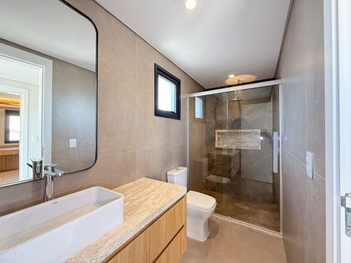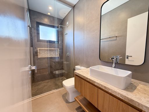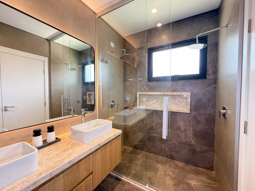 • Suíte com ducha dupla, pia dupla e box até o teto;