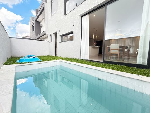 Belíssima casa nova, pronta para morar, em condomínio fechado. Projetada com alto padrão de acabamento e ambientes bem planejados, conta com 256m² de área útil.