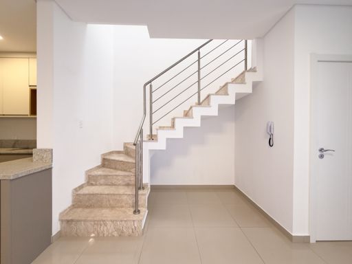 • Escada revestida em mármore travertino;
