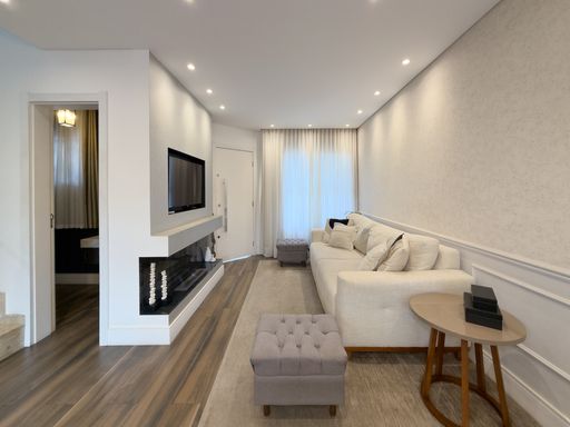 Sobrado semi-novo, totalmente mobiliado, de frente para a rua, com excelente padrão de acabamento. Imóvel em ótimo estado de conservação, pronto para morar, com móveis sob medida e ambientes bem planejados. Com 130,00m² de área total e 117,27m² de área útil.