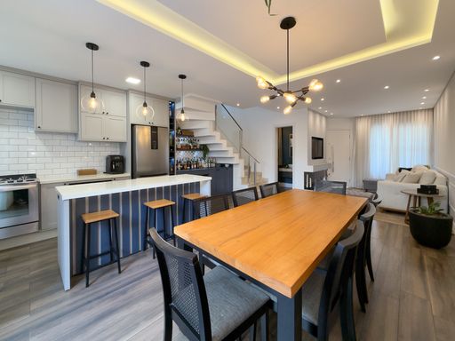 • Sala de jantar com mesa e cadeiras para 8 lugares.