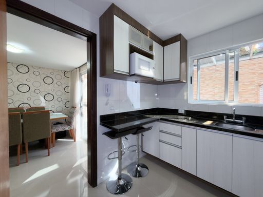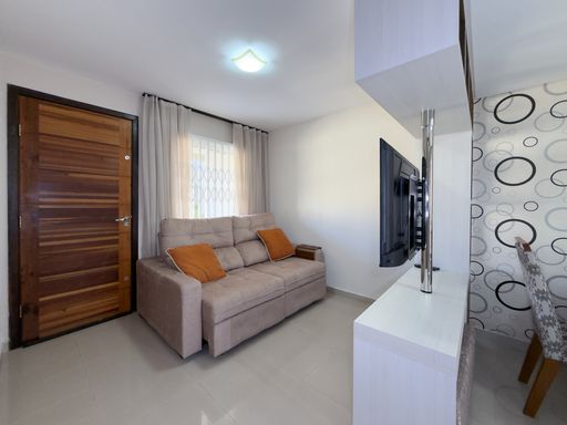 Sobrado em condomínio no Xaxim, com 120m² de área total. Será entregue completamente mobiliado (porteira fechada), móveis planejados, eletrodomésticos e tudo pronto pra morar.